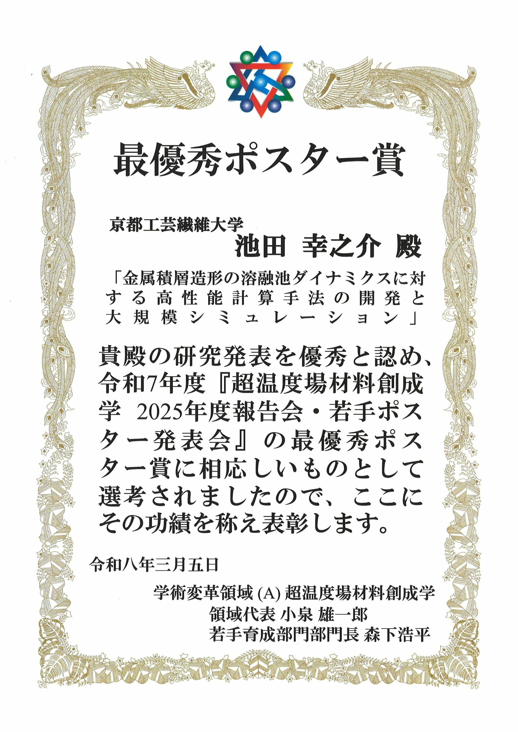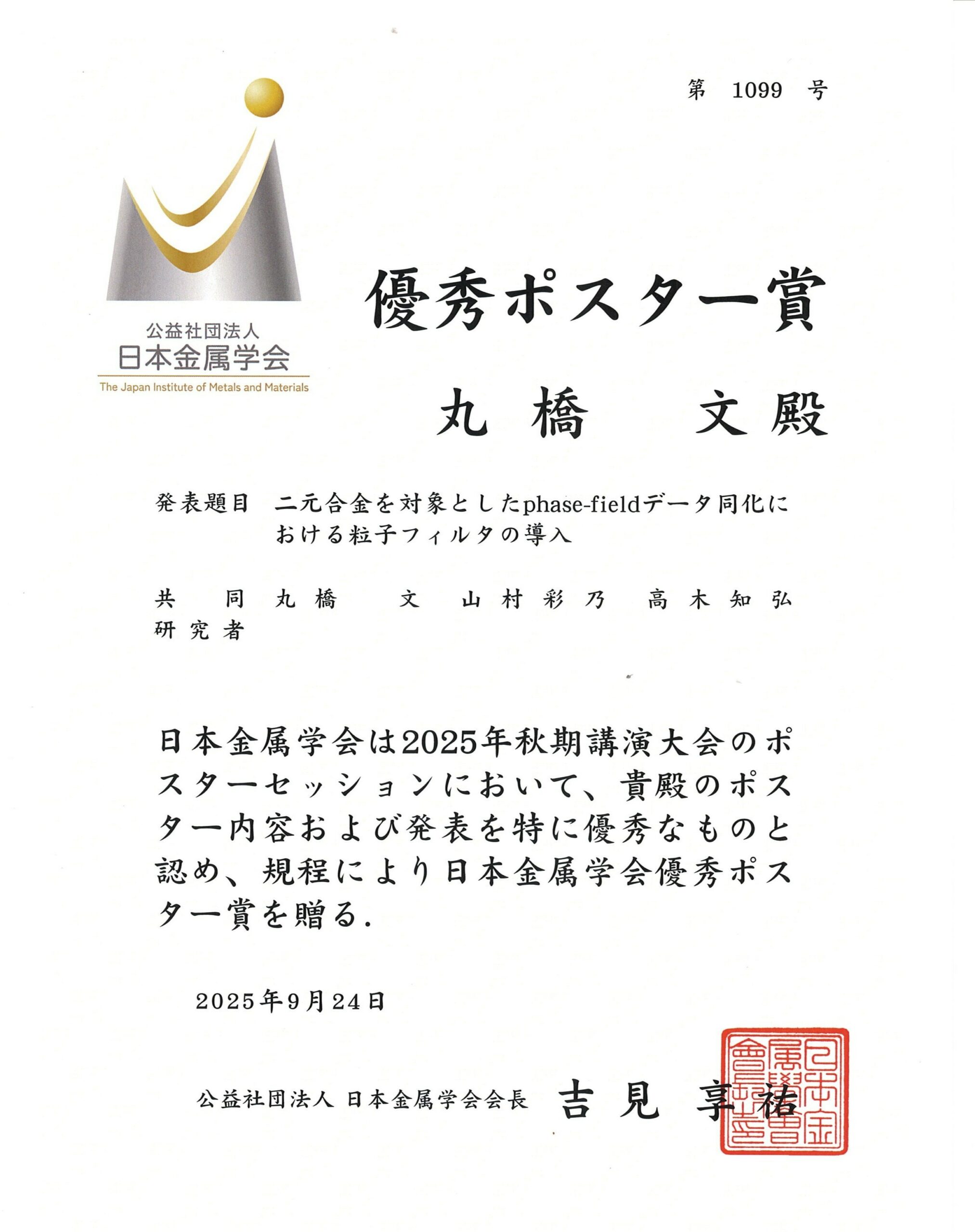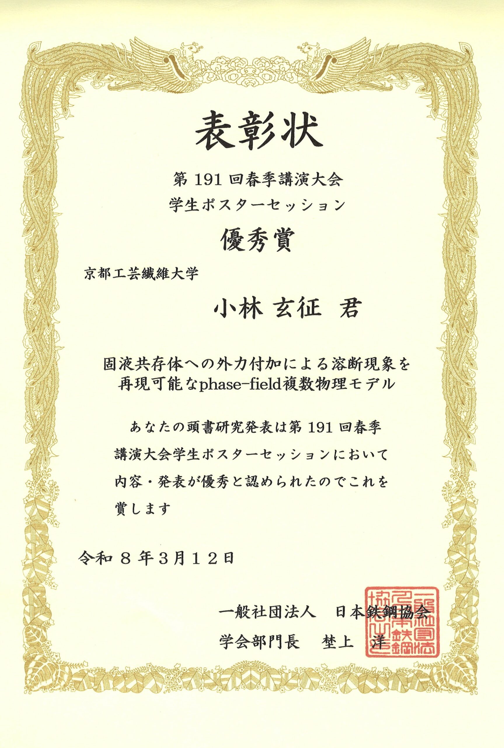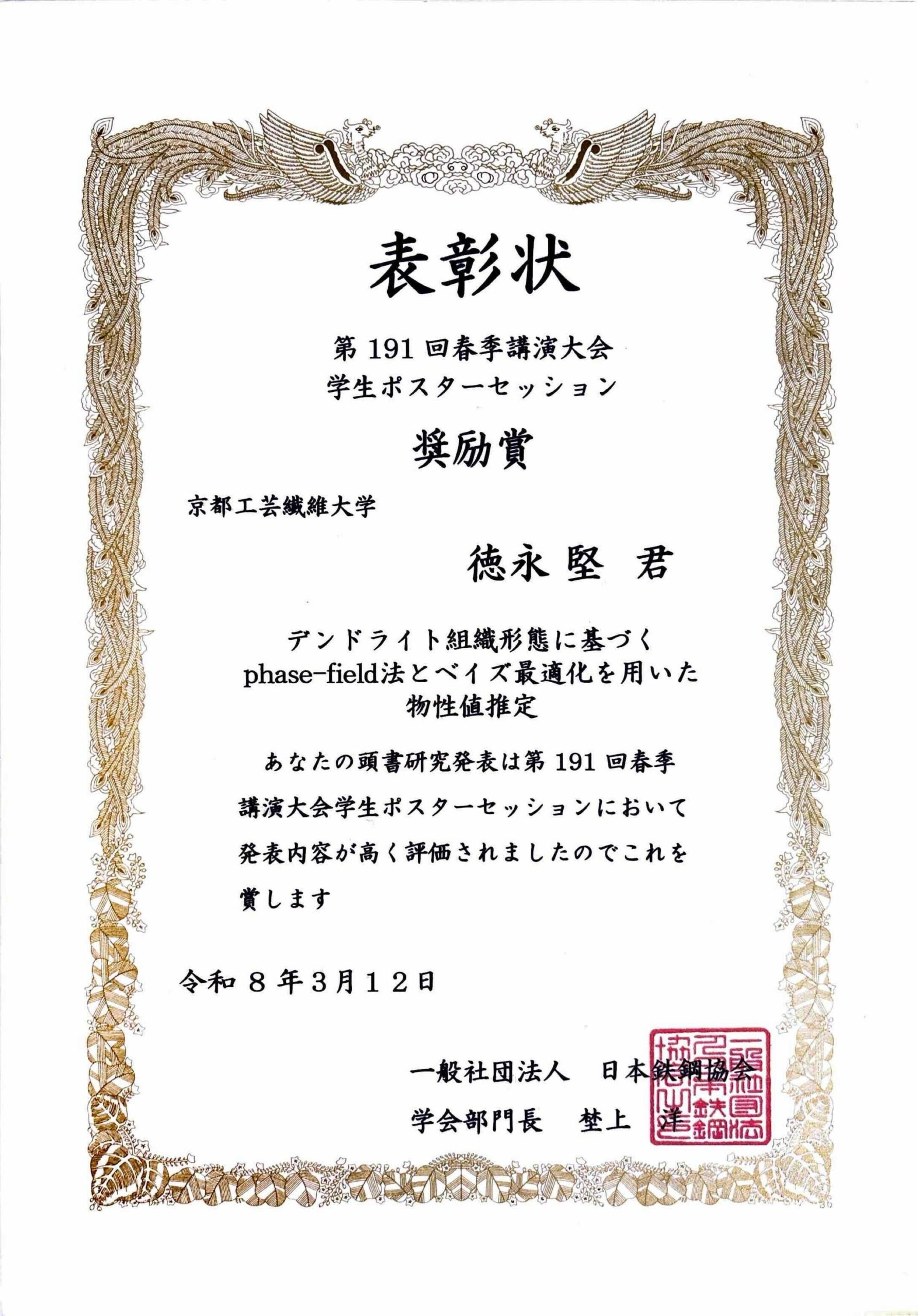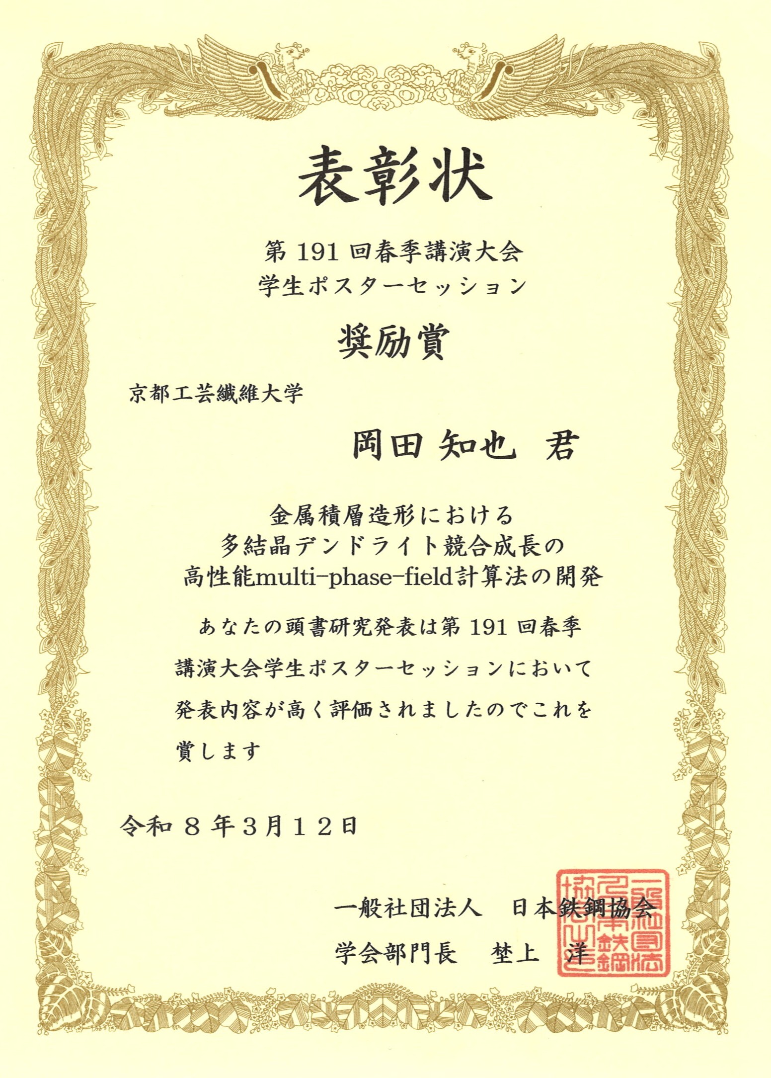 日本鉄鋼協会 第166回秋季講演大会 学生ポスターセッション 努力賞